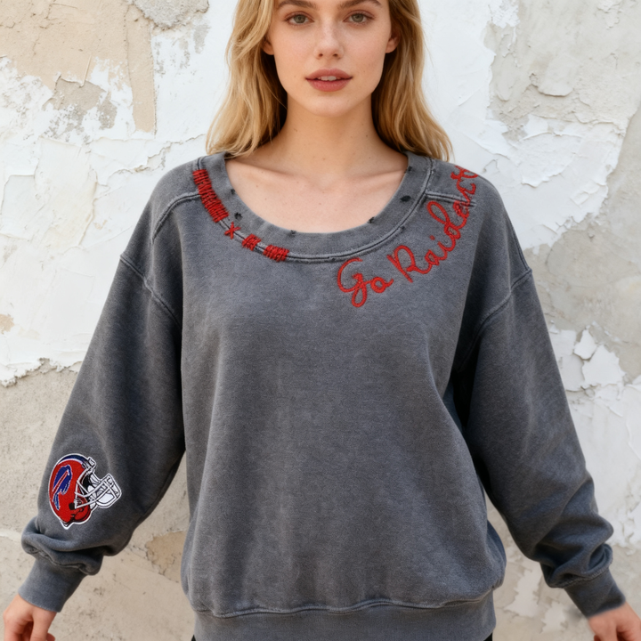 Vintage Custom Football Team Embroidered Hand Distressed Crew Neck Sweatshirt